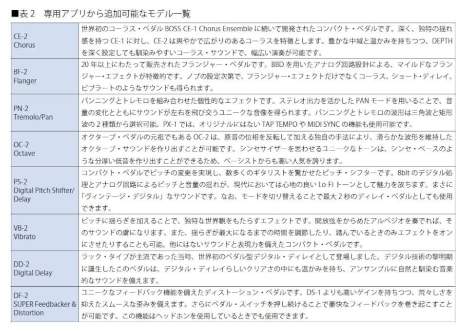 さらに、フリーのRoland アカウントを作成することで、専用アプリから追加で8つのエフェクトをPX-1 のユーザー・スロットへインストール可能です。