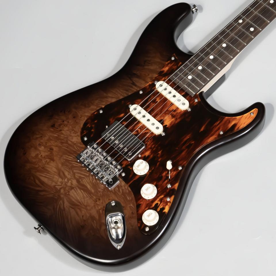 独特な杢目が魅力的なバールメイプルをトップ材に採用。ボディ本体には定番のアルダー材を採用し、より実践的なサウンドを突き詰めました。