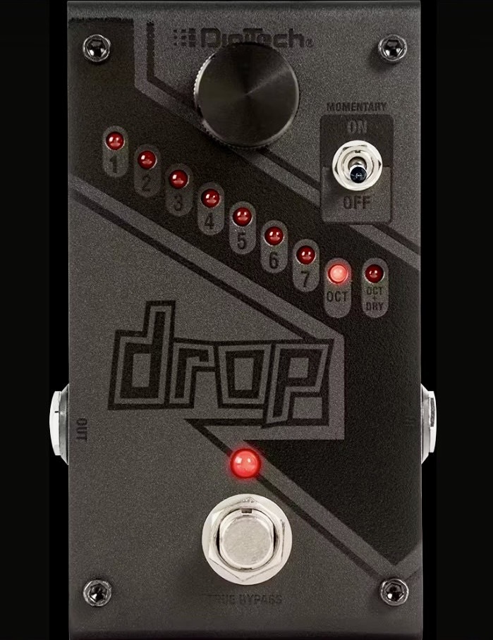 Drop(ドロップ)は、Whammy DTに搭載されているドロップ・チューン(ポリフォニック・ピッチ・トランスポージング・エフェクト)機能をコンパクト・エフェクターのサイズに取り出したペダルで、ギター本体のチューニングを変更することな