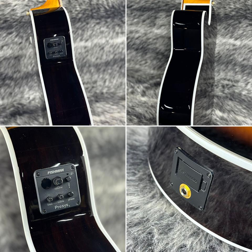 J-200 EC Studio Parlorは、歴史的名器であるJ-200ジャンボを元に、旅行に便利な小型のクーペサイズのアコースティック/エレクトリックとしてデザインされました。単板のスプルーストップに、Grover Mini-Rotomaticチューナー、そしてFishman SonicoreピックアップとPresys IIプリアンプ・システムが採用されています。