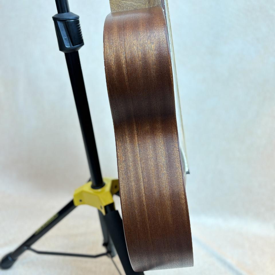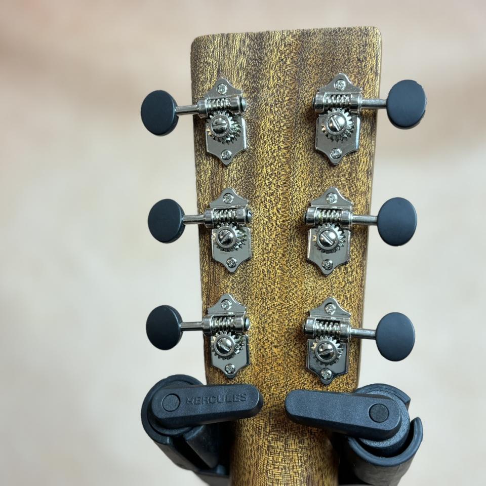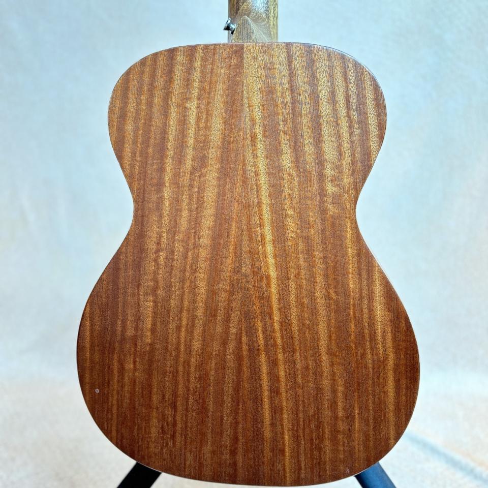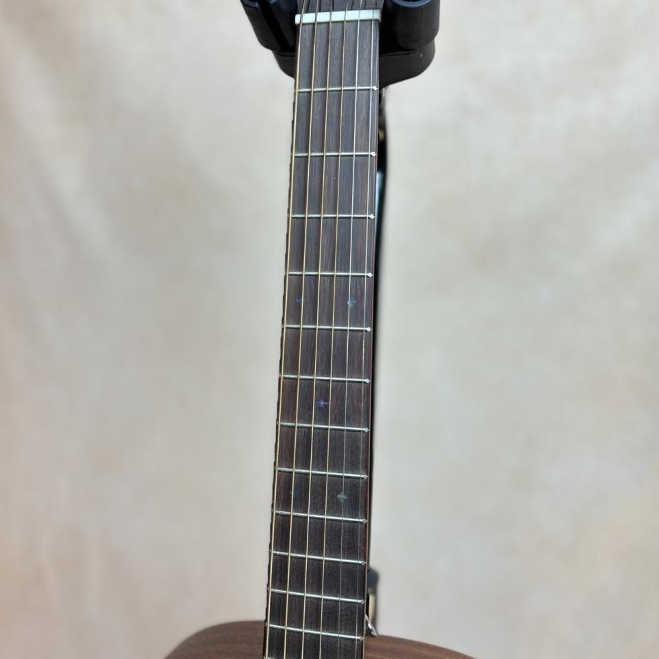 ボディにはサペリ材を採用しており、明瞭でありながらも温かみのあるトーンが特徴。コンパクトな000サイズは、抱えやすく、指板へのアクセスも容易なため、ソロ演奏からバンドアンサンブルまで幅広く対応します。