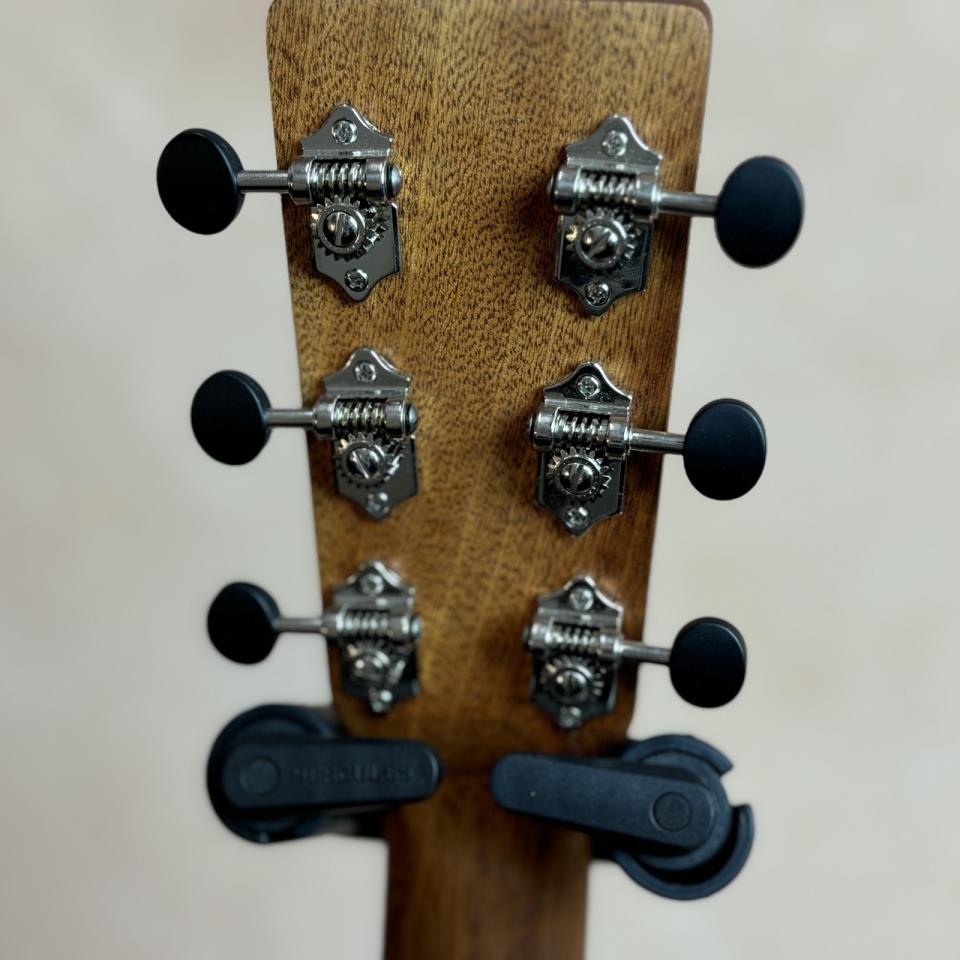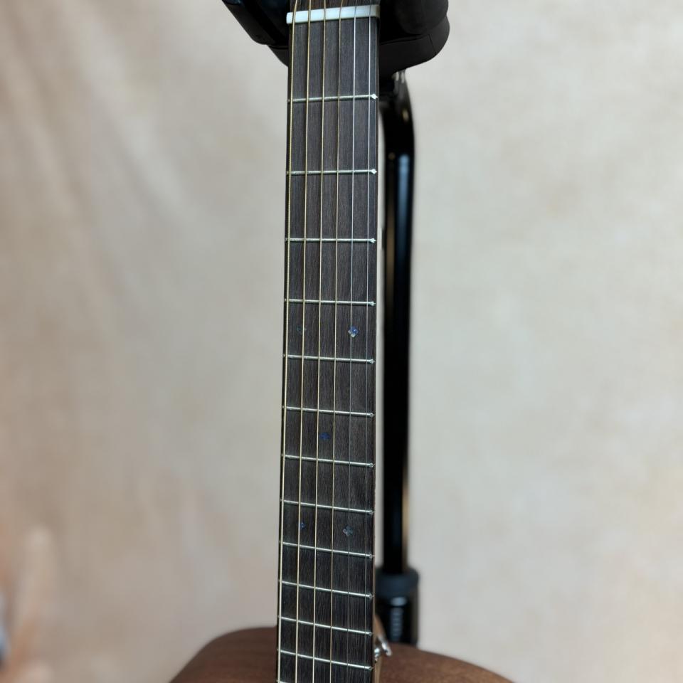 ボディにはサペリ材を採用しており、明瞭でありながらも温かみのあるトーンが特徴。コンパクトな000サイズは、抱えやすく、指板へのアクセスも容易なため、ソロ演奏からバンドアンサンブルまで幅広く対応します。