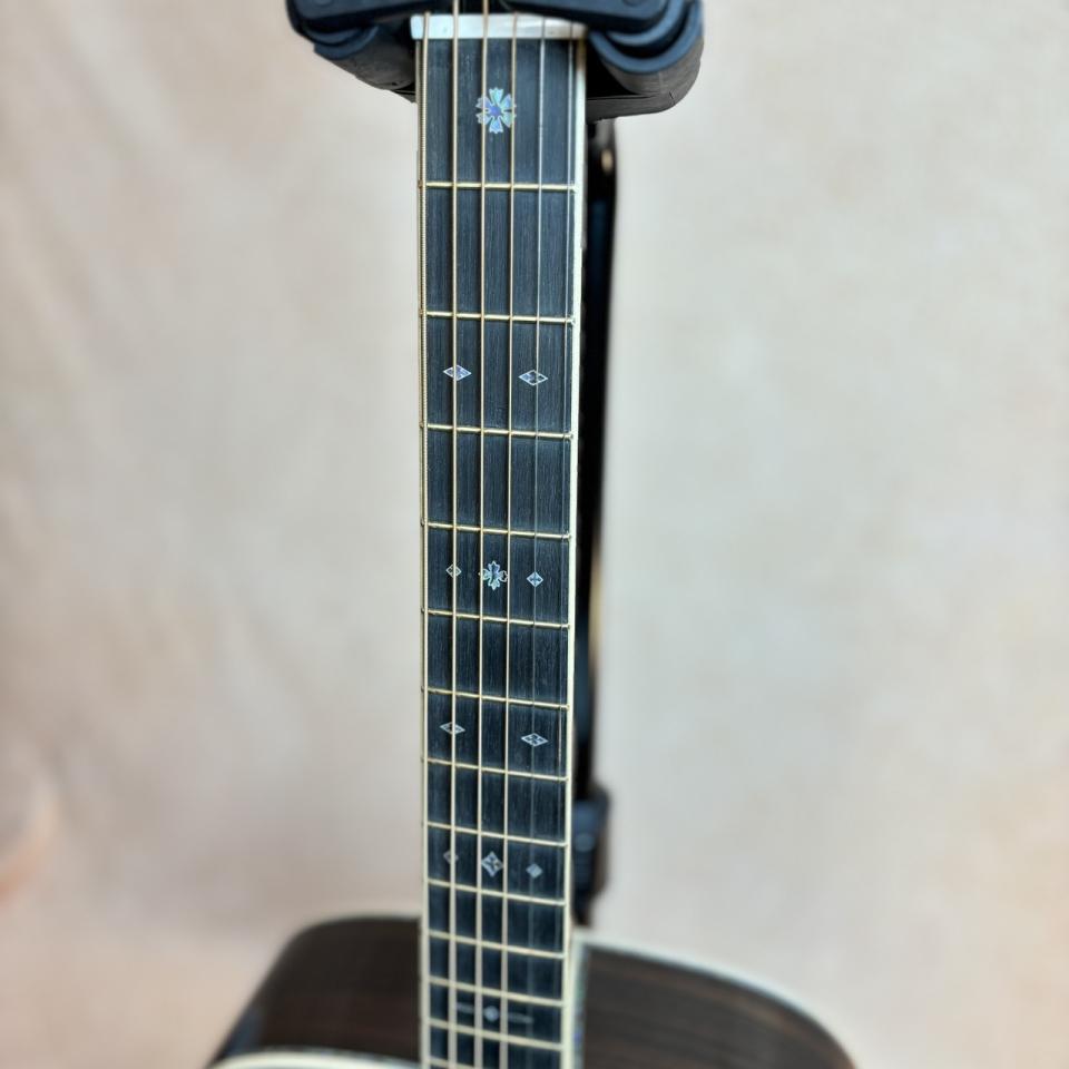 ヘッドのインレイはアヴァロン装飾のトーチインレイ、指板にはGEスタイルのスノーフレークインレイが配置されています。