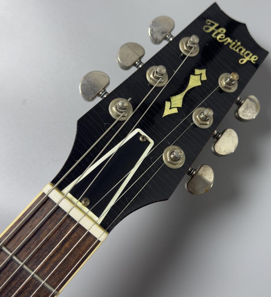 ヘッドストックにはヒイラギのベニヤがあり、ツインアローのインレイが付いた「Heritage」ロゴが付いています。
