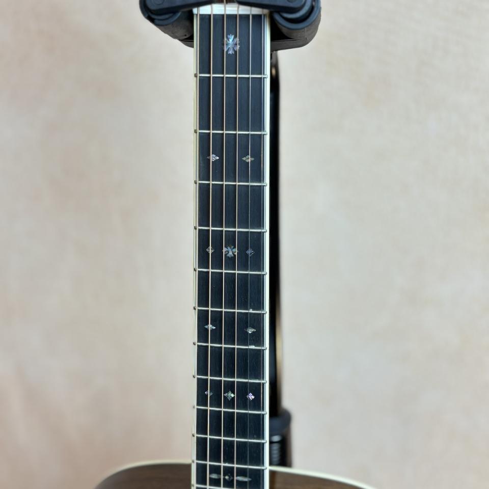 各部には美しい装飾は施され、指板のスノーフレイクインレイは繊細かつ上品な印象を与えます。