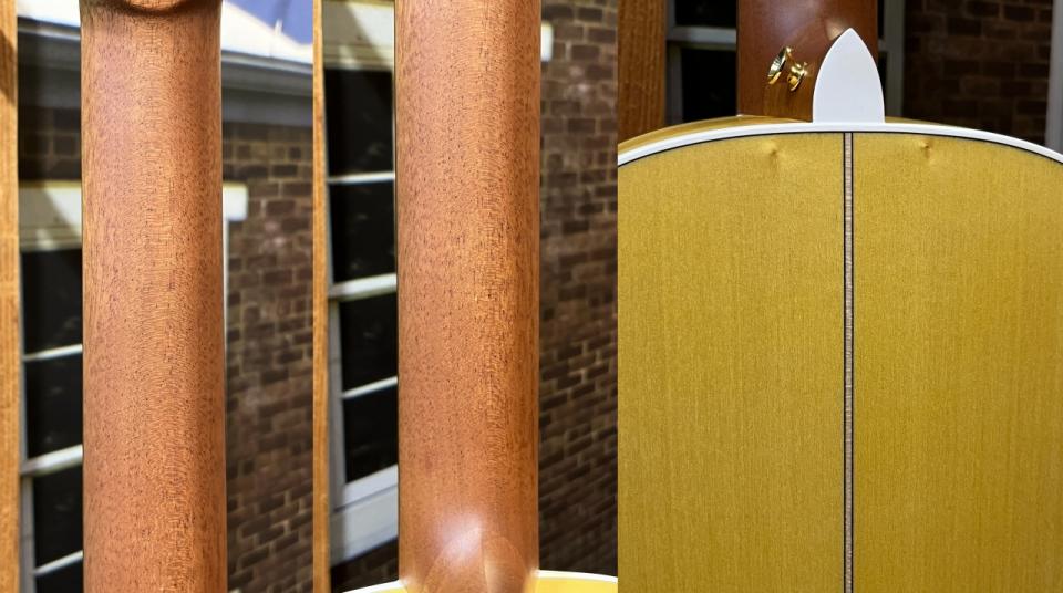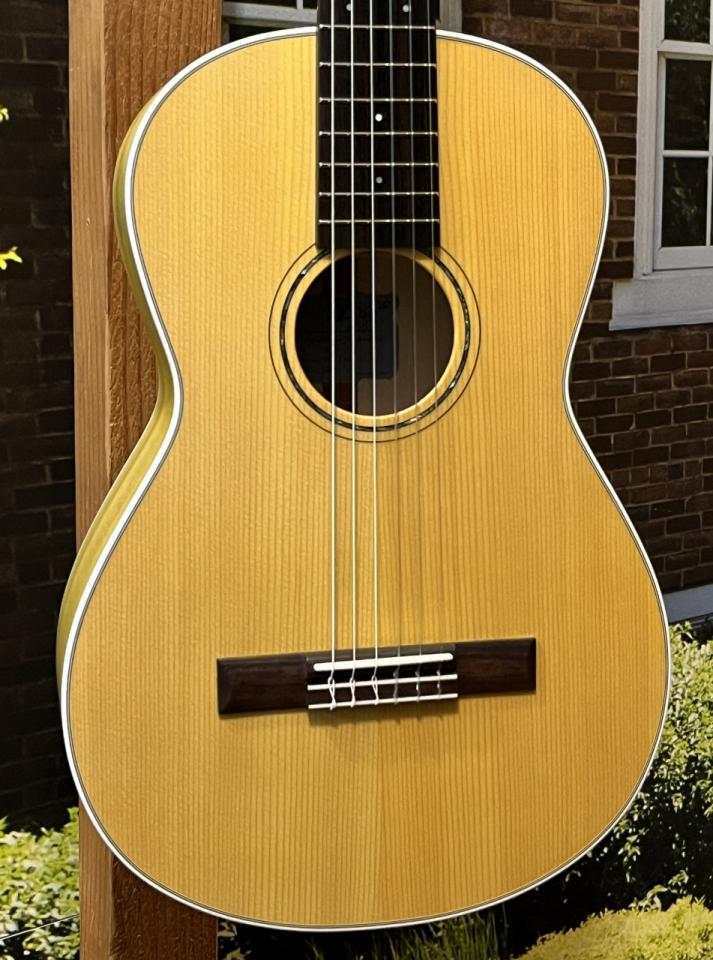表板にスプルース単板材、側板・裏板にリンデン合板材を使用した、小振りなボディサイズ