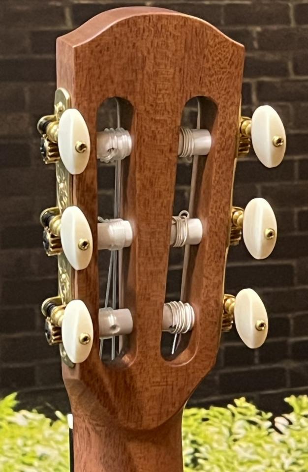 ナット幅45mmとなり、通常のナイロン弦ギターより細いネックシェイプとなりますので、エレキ・アコギプレイヤーまたは手の小さな方にもおすすめのギターになります。