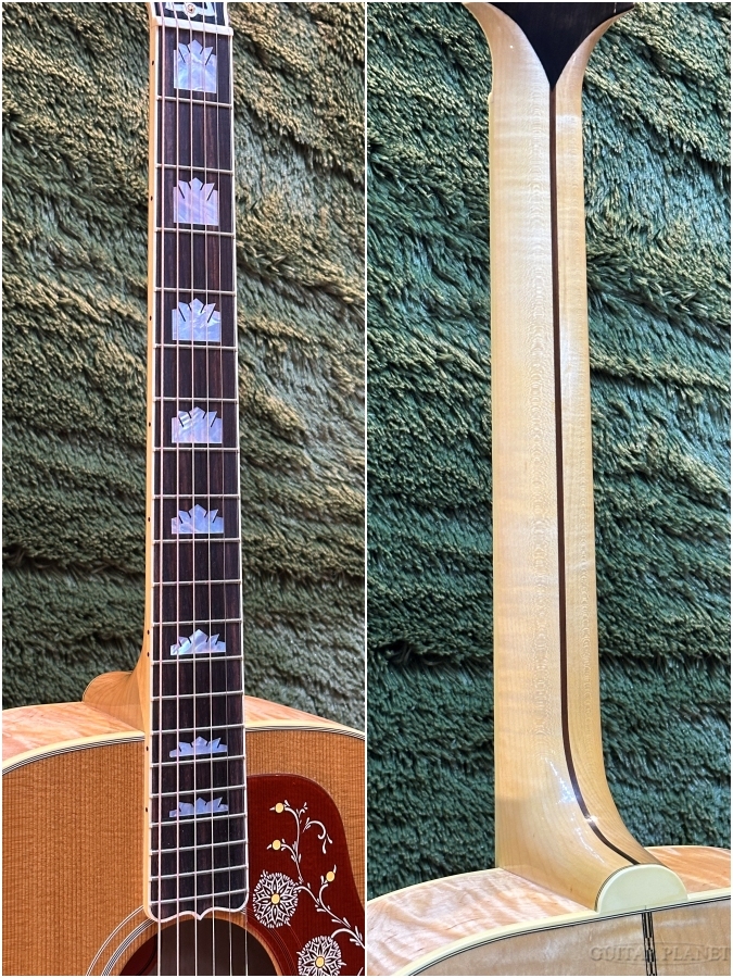 人気映画俳優、兼ミュージシャンの『レイ・ウィットリー氏』の『ラウドでゴージャスなギターを作って欲しい』との要望により、アーチトップのL-5のボディ・モールドが活用し『スーパージャンボ・ボディ』が誕生。華やかで豪華な印象は他モデルにはない圧倒的な存在感を放ち1937年の発表以来、今なお不動の人気を誇り、頂点に君臨し続けています。エルビス・プレスリーを筆頭にジョージ・ハリスン、ボブ・ディラン、ピート・タウンシェント、キャット・スティーブンス、など数多くのギタリストを魅了したSJ-200は、現在は、米国のモンタナ州、ボーズマンにあるファクトリーでハンドクラフトされています。