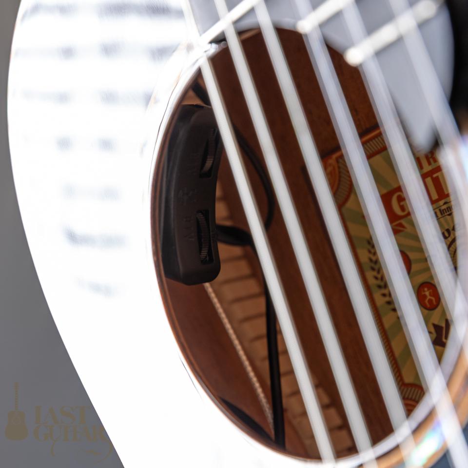 ピックアップシステムは、aNueNueオリジナルを搭載、アンダーサドルピエゾとコンデンサマイクがミックス可能なデュアルシステムで、幅広いサウンドメイクを実現しています。