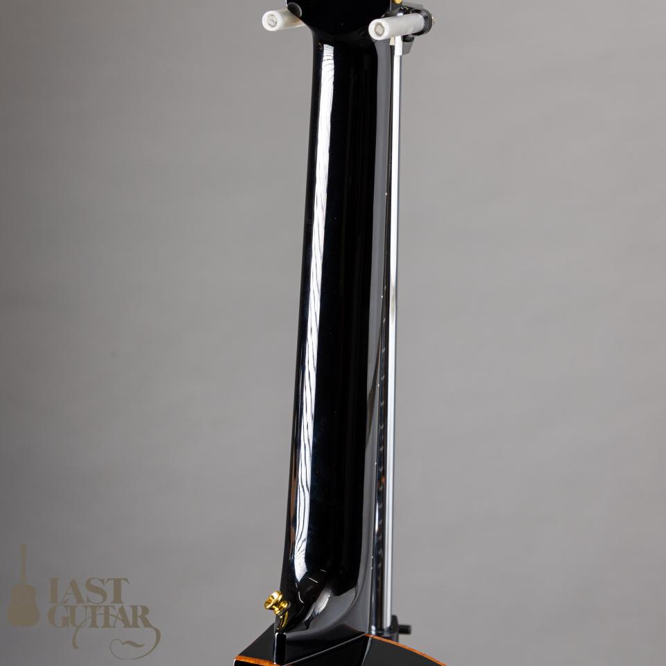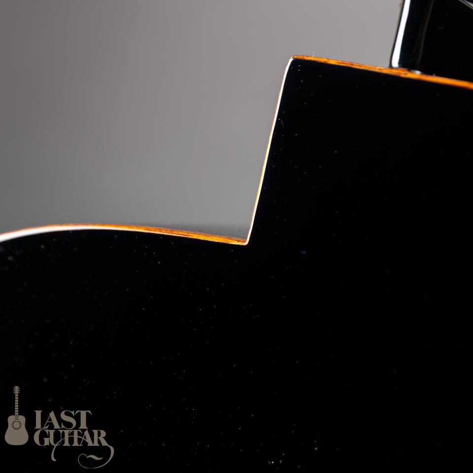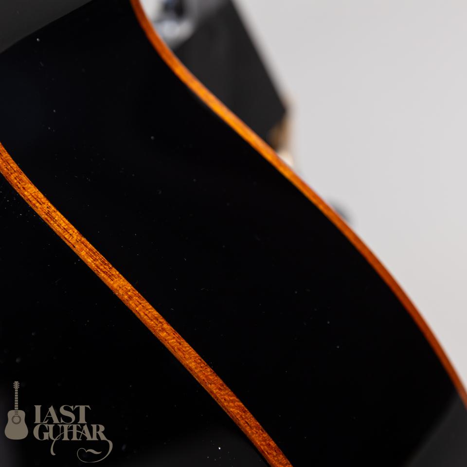 カーリーメイプルをシダー材の表面に使用、シースルーブラックカラーとの組み合わせでステージ映えする美しいルックスに仕上がっています。サイドとバックには、さりげなくラメが入っているのも良いですね。またウッドバインディングも高級感もあります。