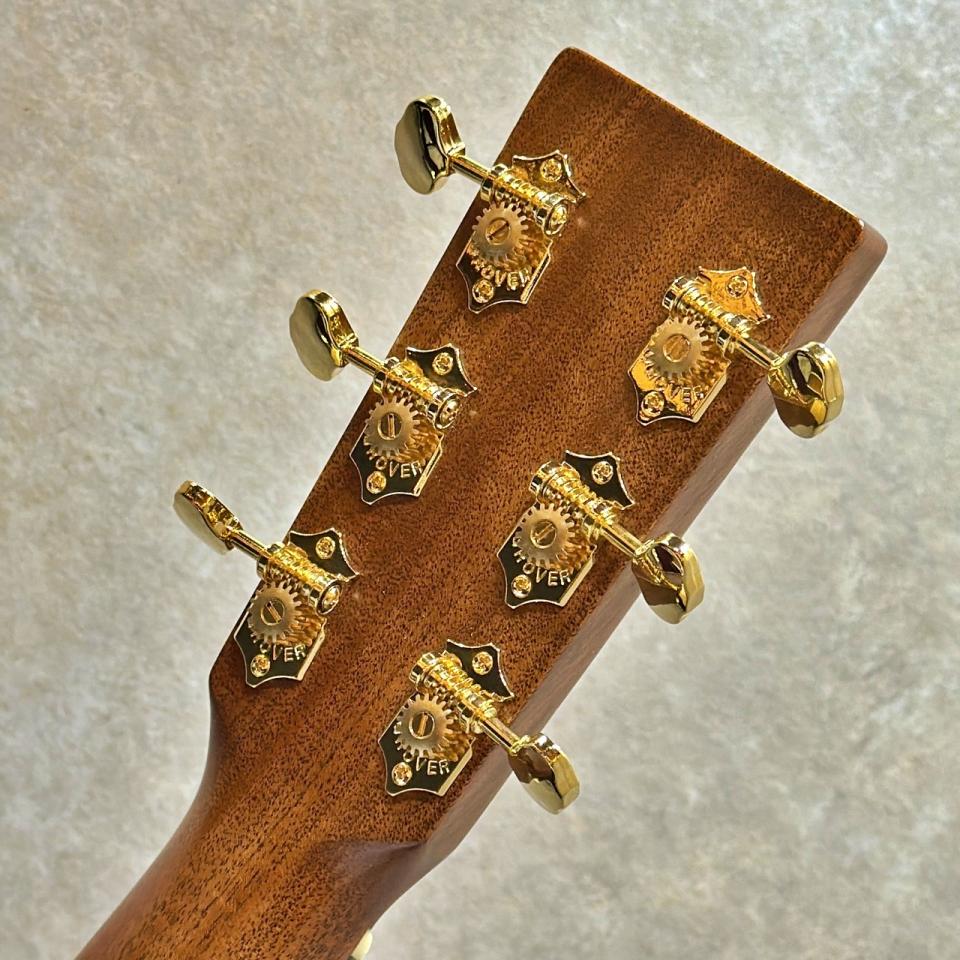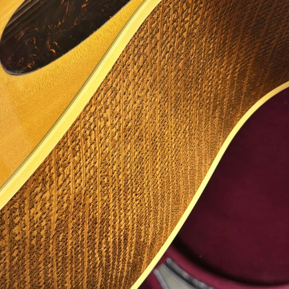 ピックガードはクラシックなべっ甲柄を採用。最大の特徴は、ジャーマン・ホワイトオークによるバック&サイドとヘッドプレートで、