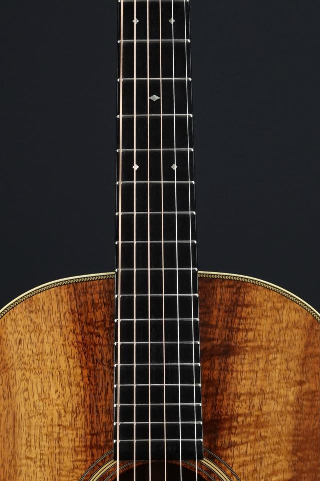 ボディの外周にはヘリンボーンのトリムとアイボロイドのバインディングが施され、戦前の28Kのスタイルがしっかりと再現されています。