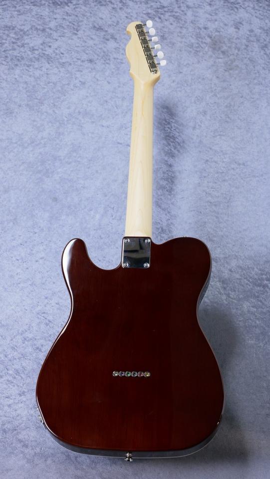 べっ甲柄のピックガードがチョコミントのような爽やかな仕上がりで、サイドバックは「シースルーブラウン」。