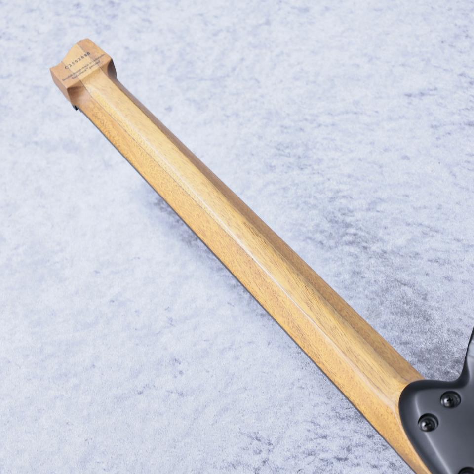 ステンレスフレットが打ち込まれたマルチスケールのネックは6弦側が25.5インチ、1弦側が25インチのスケールとなっており、低音弦のテンションは確保しつつも1,2弦の倍音豊かなサウンドを狙ったデザインす。