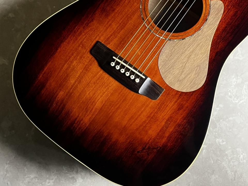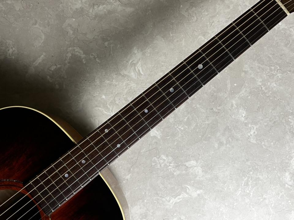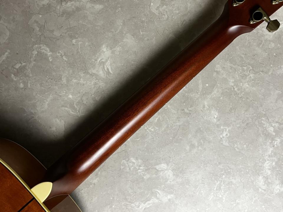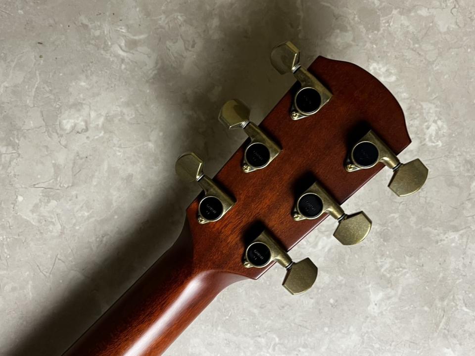 ドレッドノートギターの85%サイズという非常に弾き易いボディサイズながら、スプルース単板、メイプルサイドバックという硬めで非常に良く鳴るアコースティックギターです。Kヤイリらしい独特の渋いサンバ ストカラーを採用し、ペグも少しくすんだ感じがアンティークな雰囲気を醸し出します。