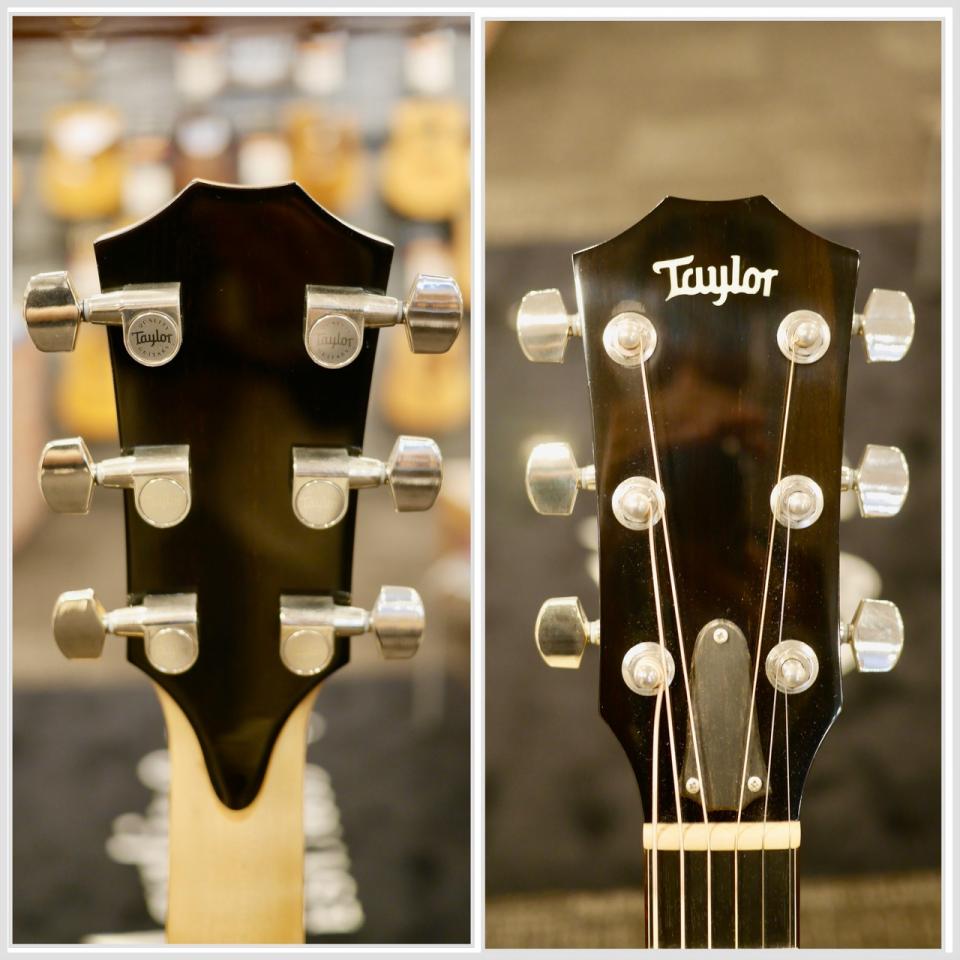 ホールに黒いバインディング、指板のインレイは、Taylorのなかでもあまり見ない装飾です。