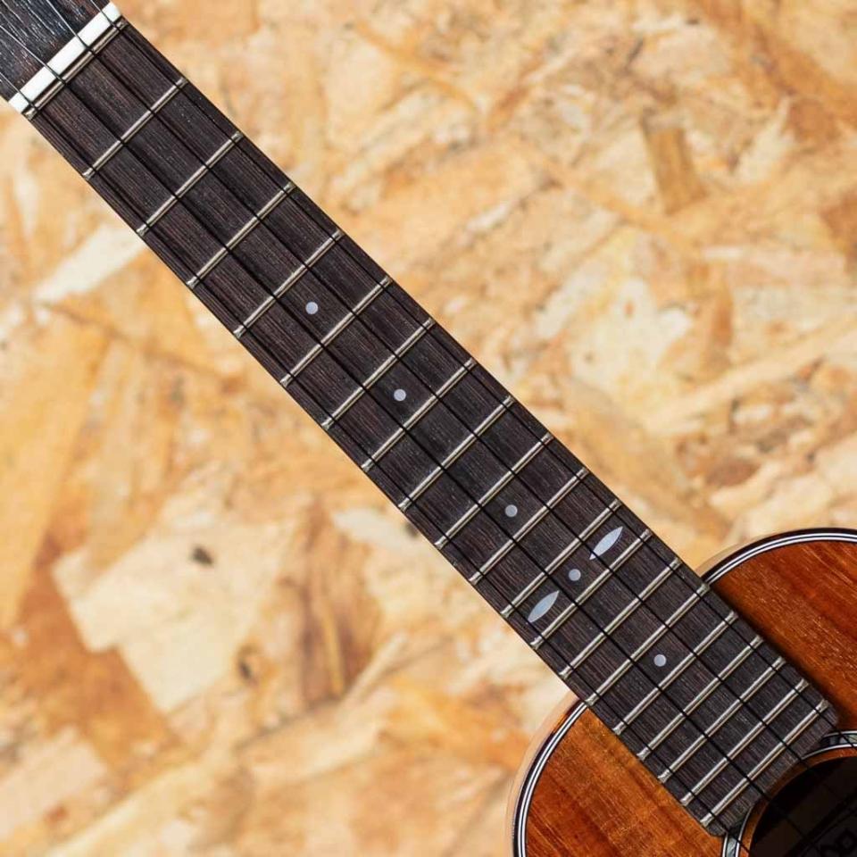 ・占部ウクレレ特有のやや薄めで握り易いネックシェイプ、0フレット仕様でローポジションの弾き易さは格別です。