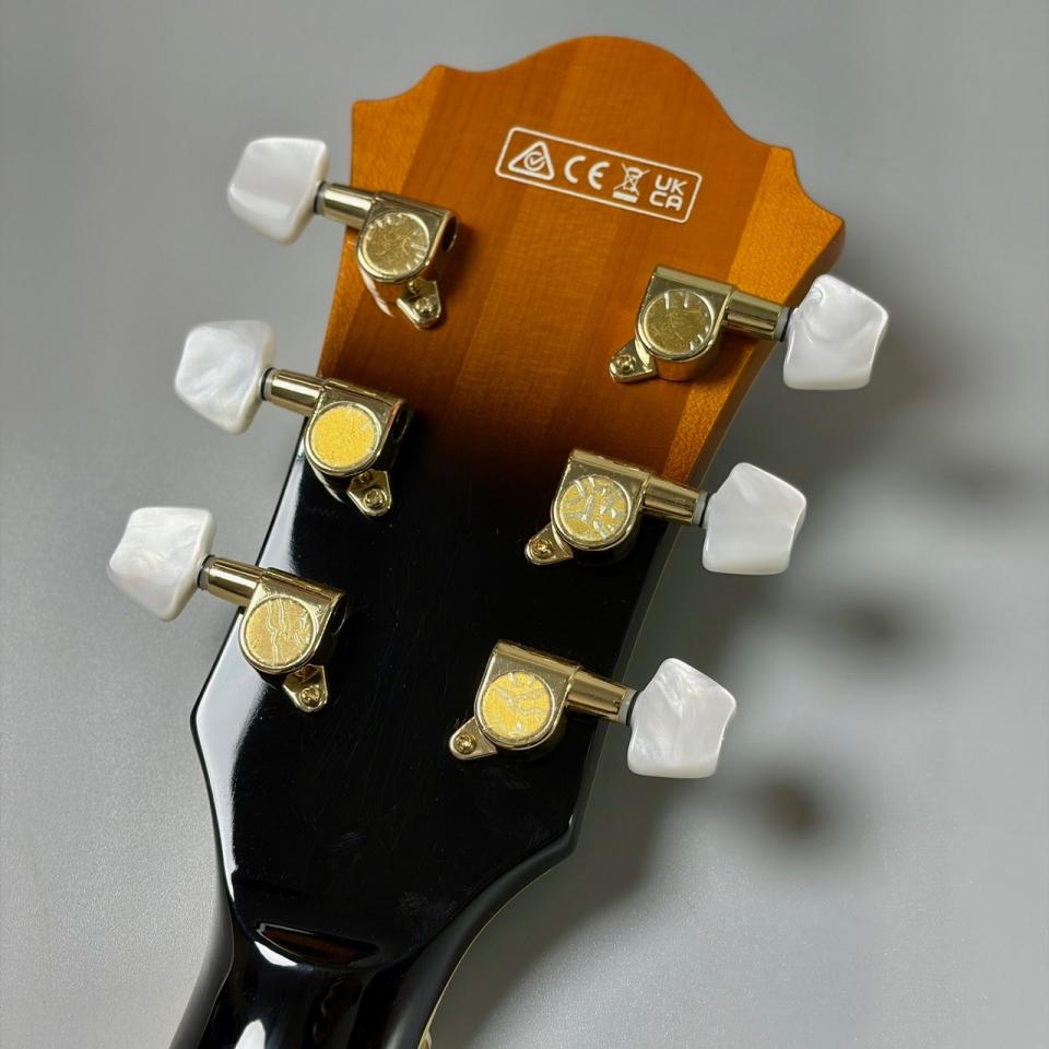 このギターは、そのルックスに劣らない芳醇なサウンドを実現するために、随所にこだわりが詰まっています。スプルーストップ&メイプルバック&サイドのホロウボディと、ニュアンス豊かなGB specialハムバッカーピックアップの組み合わせは、ウォームで豊かなトーンを生み出します。フィードバックに強い設計も、彼のトレードマークであるあの独特のサウンドを、あなたのものにすることができます。