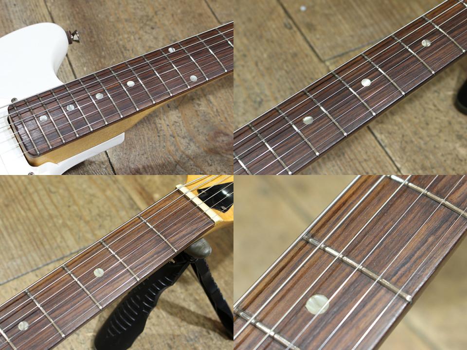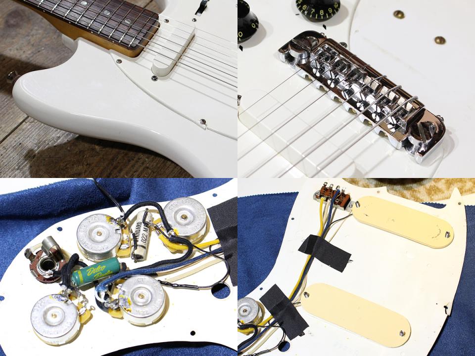 ペグはオリジナル。ギアが摩耗しており固め。また曲がっているものもありますが、一応年度を鑑みた機能としては基準内としております。ナットはオリジナルですが交換推奨、1弦の溝を補修して出音は辛うじて確保しました。ポットは交換されています。スイッチは切替の際音切れがあります。