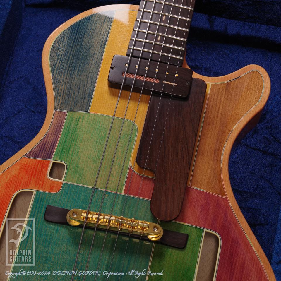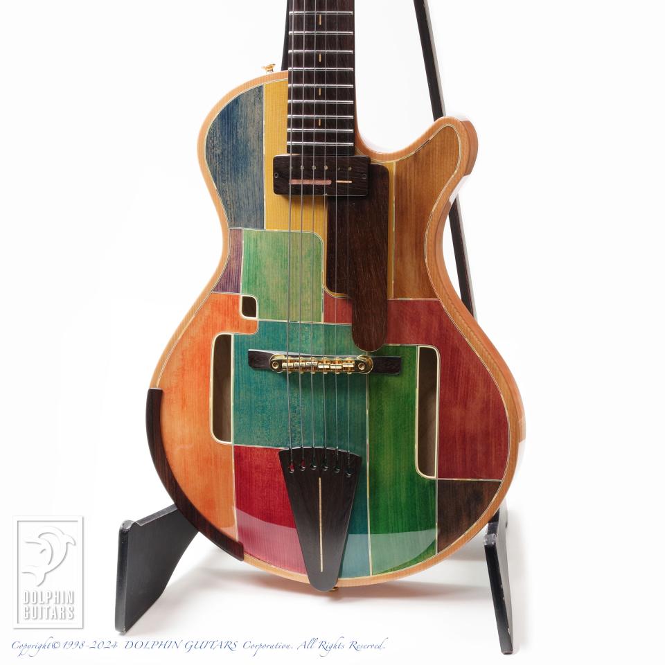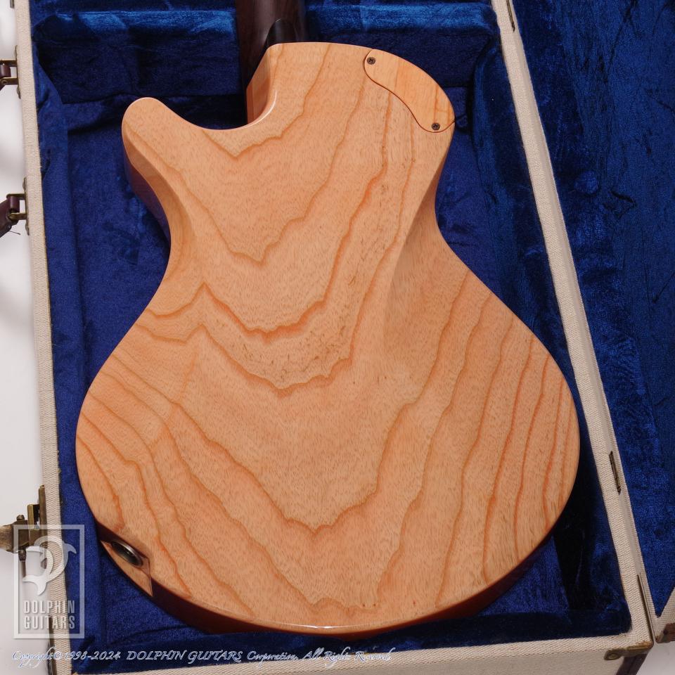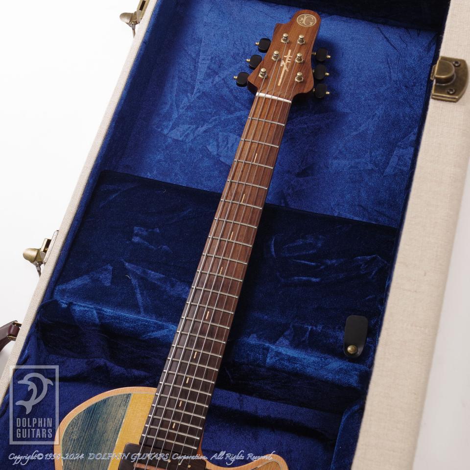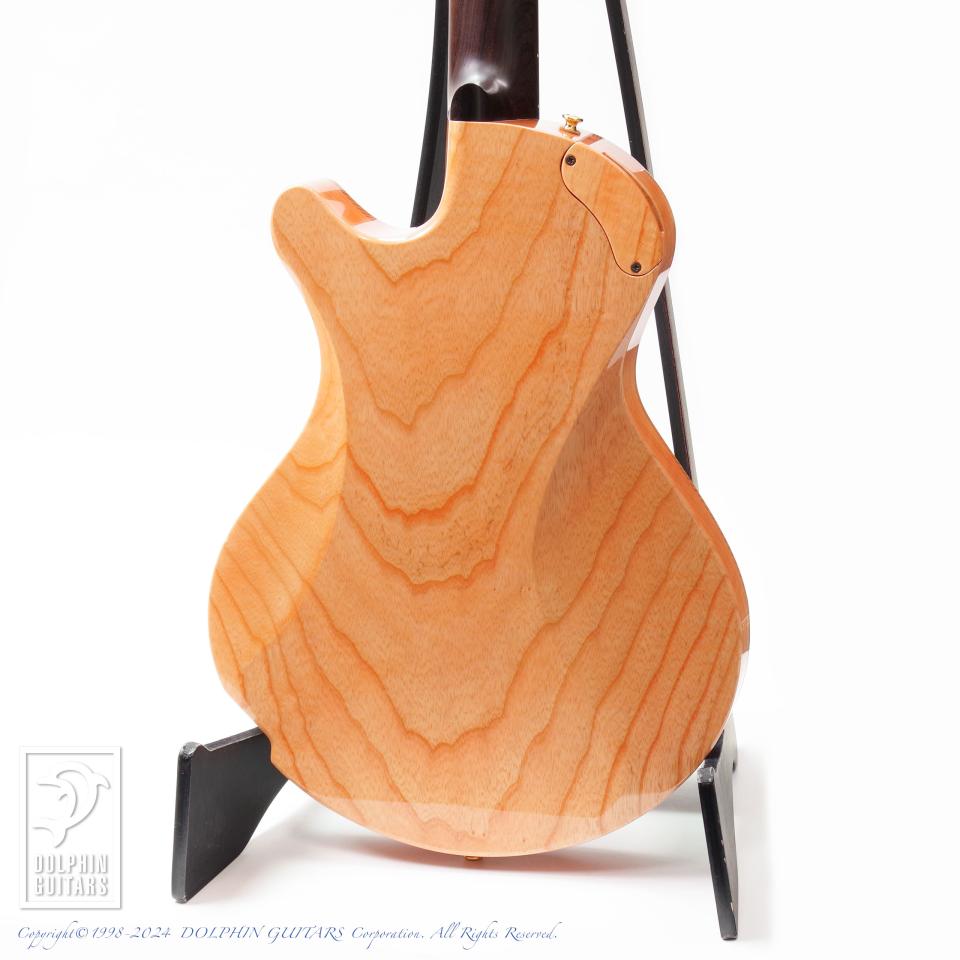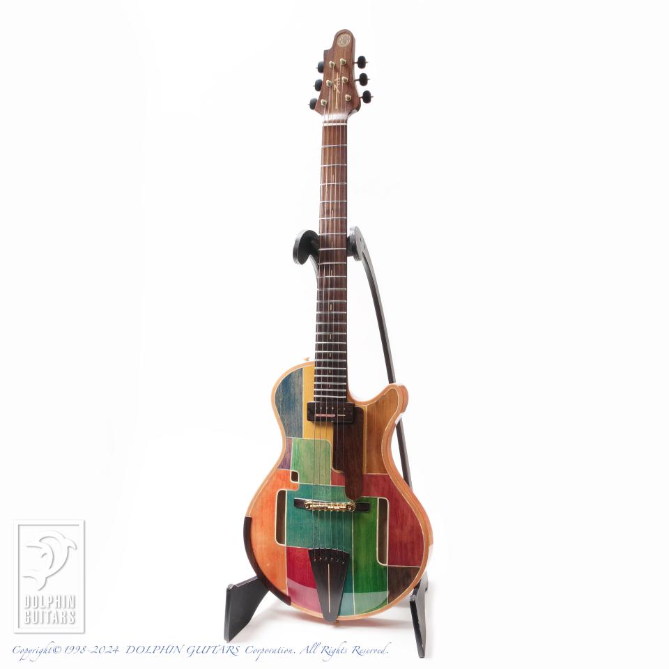 独創的なデザイン、精巧に作り上げられた各部パーツ類、高い木工精度やフィニッシュの美しさなど、すべてが完成度の高い逸品。ピックアップまで製作するという徹底したハンドメイドを貫いており、これこそ唯一無二の存在であります。多くの方が現物を見ることができない事から幻のギターと言われるほどの激レアギター。中でもこちらはハカランダ1ピースネック仕様と、非常に珍しい個体であります。