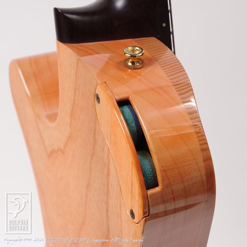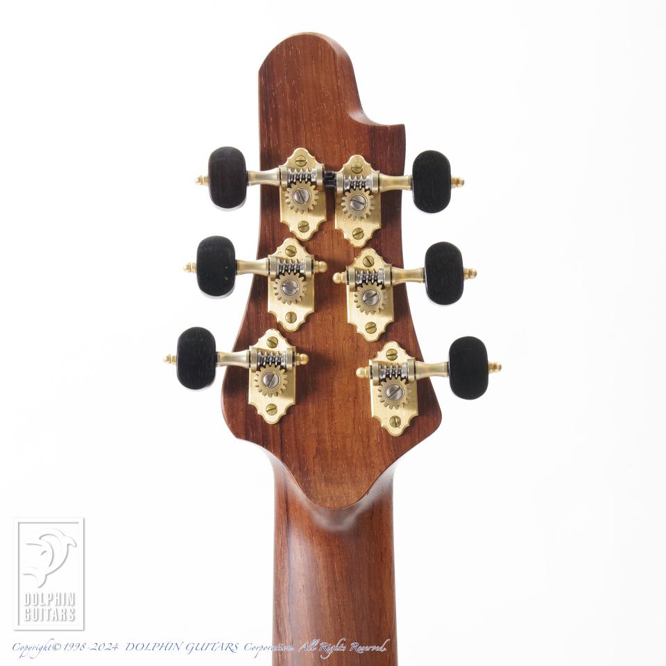 オリジナルの手巻きピックアップから出力されるサウンドは明瞭で各弦の分離感があり、そのスペックやルックスに劣らず圧巻です。本器のサウンドから感じられる立ち上がりの良さや力強さは、メイプルネックやマホガニーネックのそれとも違っており、ハカランダならではと言えます。