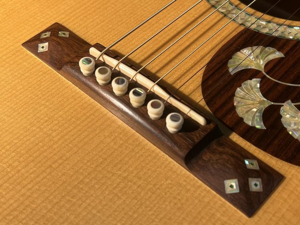 「美しさ」は視覚だけでなく放たれるそのサウンド!一人でオーケストラ演奏をしているかのような芳醇で深みと艶、OMモデルならではのロングスケールは000サイズとは思えない音量と拡がり。正に「いつまでも弾いていたい」と思わせてくれる逸品です。