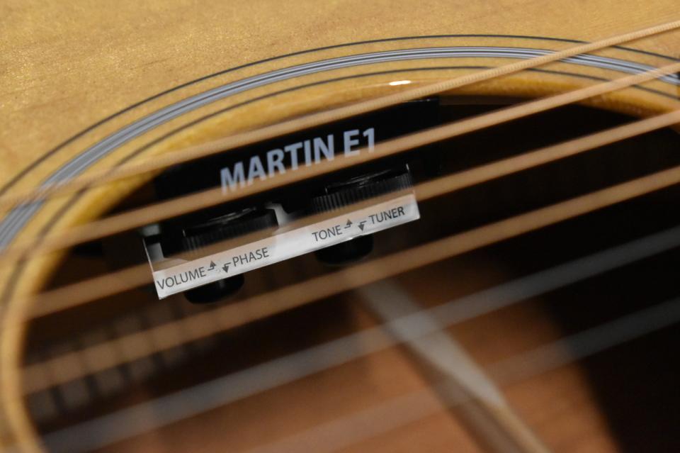 Martin E1 エレクトロニクスを搭載したエレアコ仕様、サウンドホール内にはチューナーが初期搭載されております。