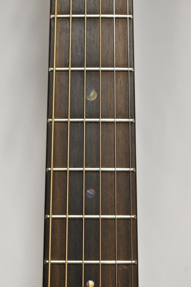 フレット残量は9割、弦高は6弦側約2.8mm、1弦側約2.1mm、と標準的なセッティング、サドル高さは6弦側約4.1mm、1弦側約3.4mmと余裕がございます。