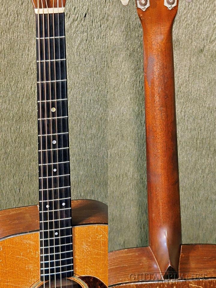 トップはアディロンダック・スプルース、リアシフトのノンスキャロップドブレーシング、Tバー・トラスロッド、ナット幅42.9mm、極太ネックというこの時期ならではの特徴を持ちます。