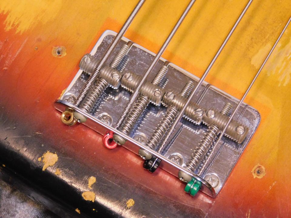 ブリッジアッセンブリーが同型のものと交換されており、交換跡があります。ストラップピン×2,PUフェンス、ブリッジカバーが交換です。それ以外はオリジナル。