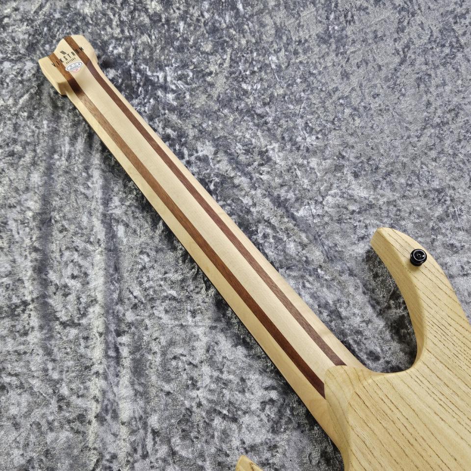 ネック材はメイプルとサペリの5プライネックがセットネックにてジョイントされており、ボディは硬質なアタックと抜けの良いアッシュが採用されております。