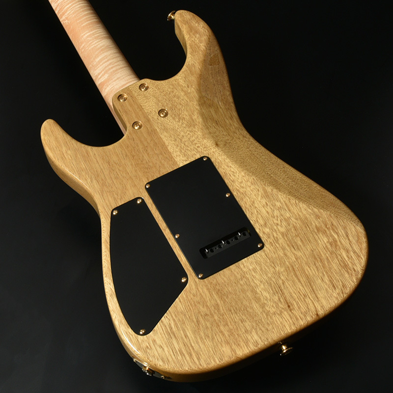 ボディ材にはアフリカンコリーナを採用。コリーナウッドはマホガニーに近く、バランスの取れた重量・硬質さで人気の高い材の一つですが、近年その流通量は減少傾向に。説明不要のハイミッドにかけて抜けの良いサウンドを響かせ、トップ材とのコントラストが非常に魅力的なルックスに仕上がりました。