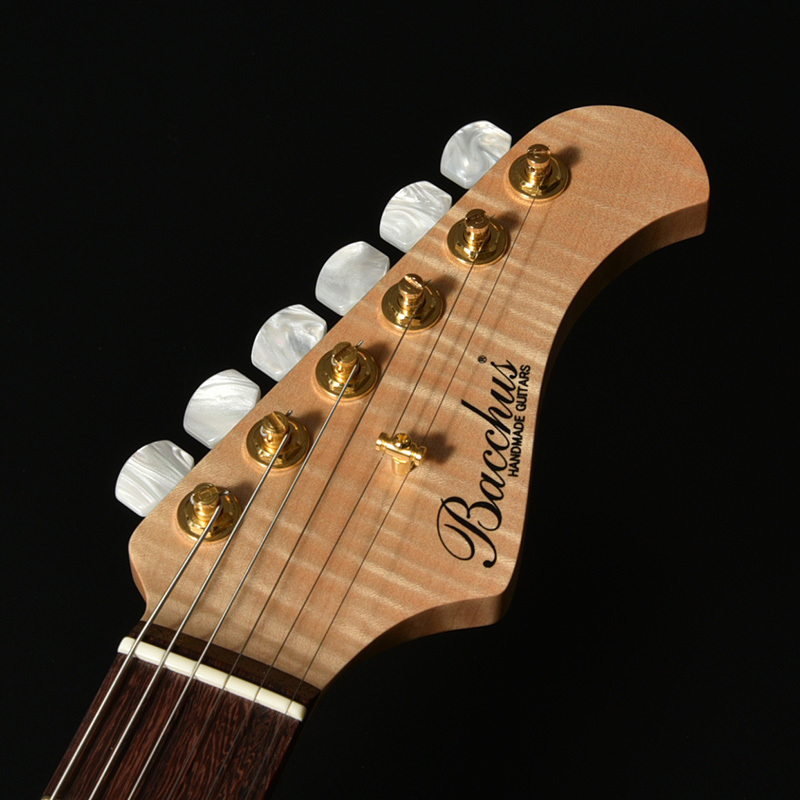 ピックアップにはBacchusオリジナルのハムバッカータイプ2基をマウント。コイルタップスイッチを搭載しており、ハムバッカーの太く伸びやかなサウンドに加え、シングルコイル・トーンも出力可能です。現代のミュージックシーンに求められる幅広い音色を一台でカバーします。