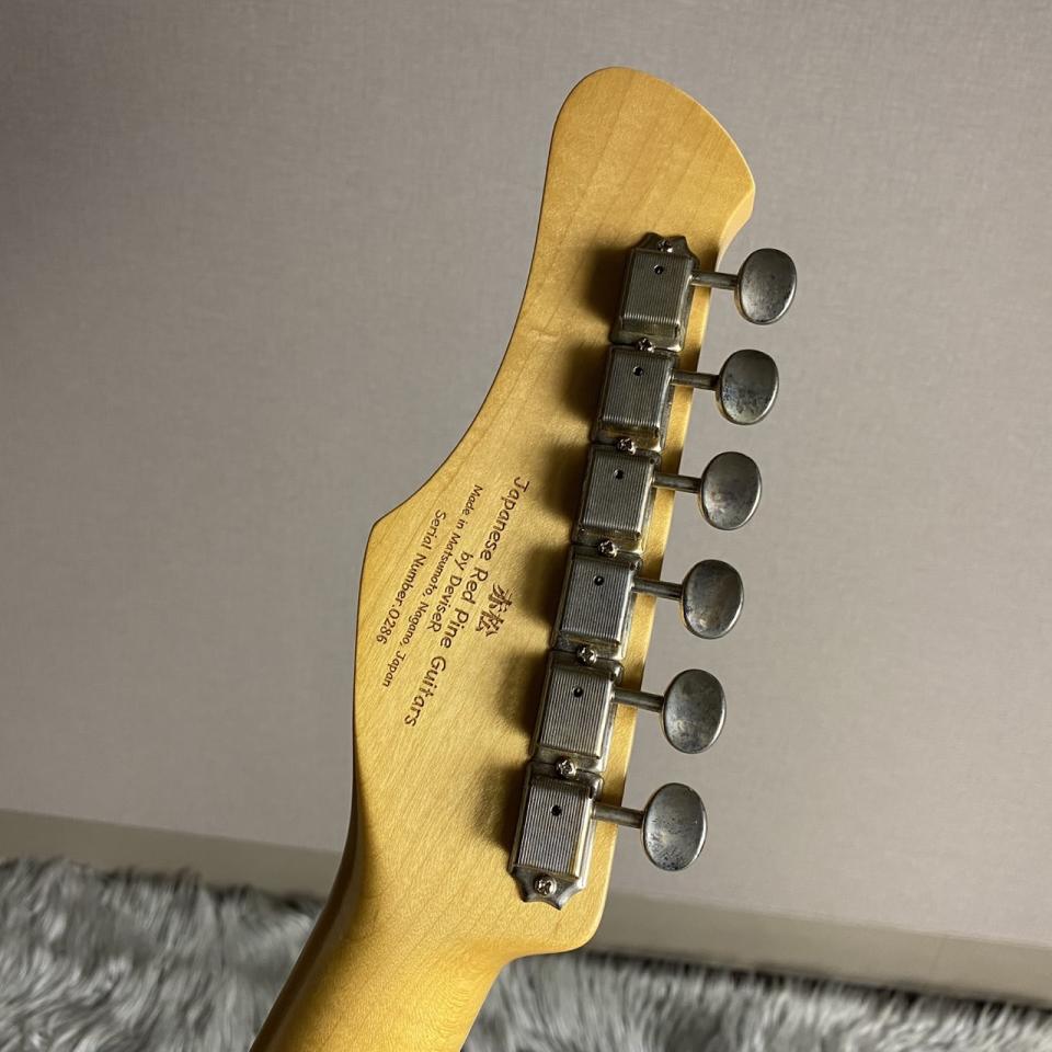 赤松の持つ節やシミを個性として捉え、全体的なデザインに馴染むようボディとヘッドストック、そして金属パーツにエイジド加工を施しています。