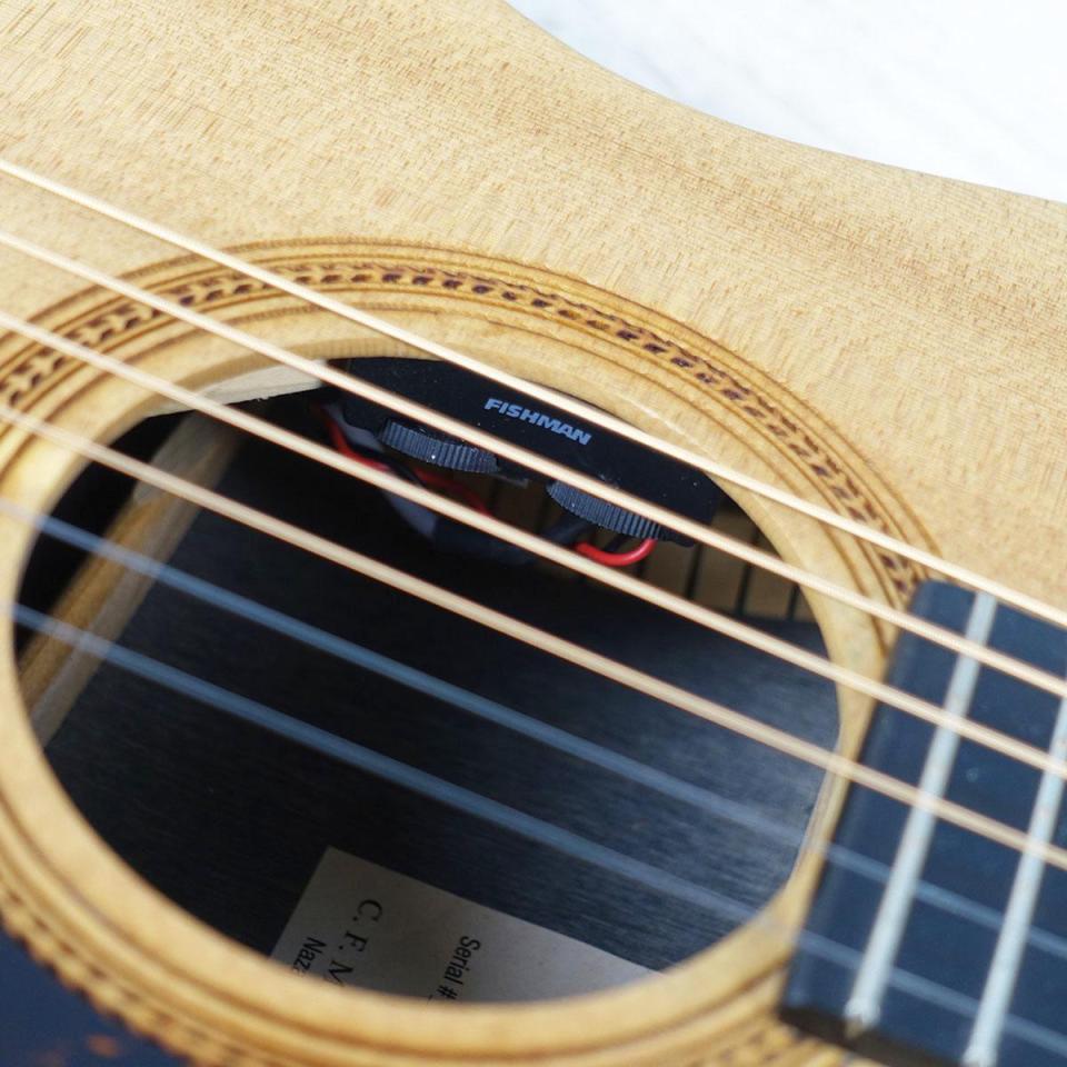 トップにシトカ・スプルース単板、サイド&バックにハイプレッシャー・ラミネイトのローズウッド柄を採用。ミニアコースティックギターながらしっかりとしたXブレーシングを採用。
