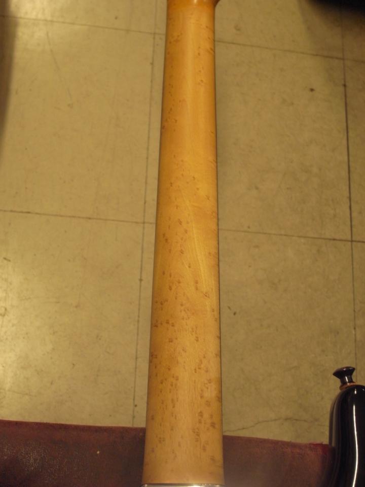 ネックバックはMUSIC MANのようにトップコートがきれいにはがされ、ウッディな質感のや消しフィニッシュとなっています。