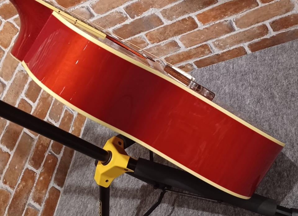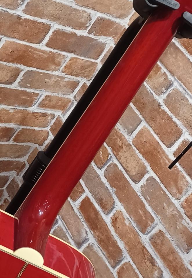 スクエアショルダー・ボディによりバランスのとれたウォームなサウンド傾向を持つ一方、バックとサイドに用いられたメイプル材とロングスケール構造により、歯切れがよく、クリアで、サウンド・プロジェクションに優れた特性を誇ります。