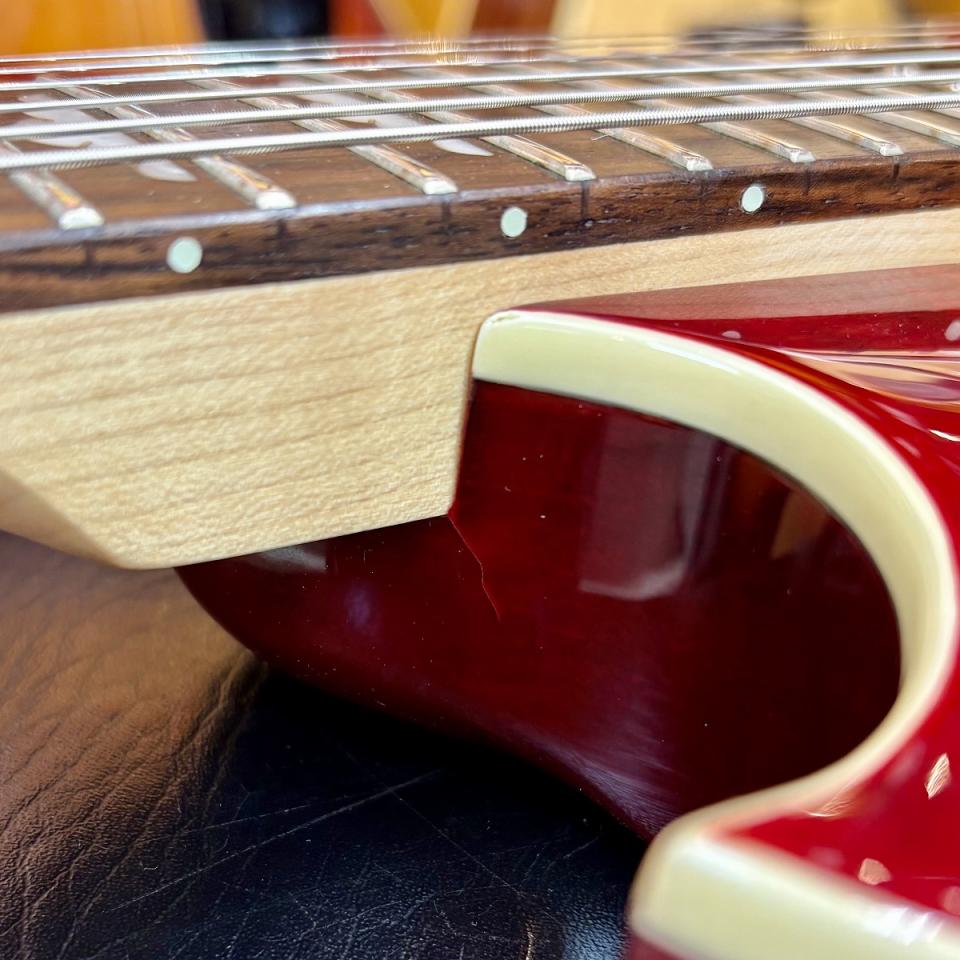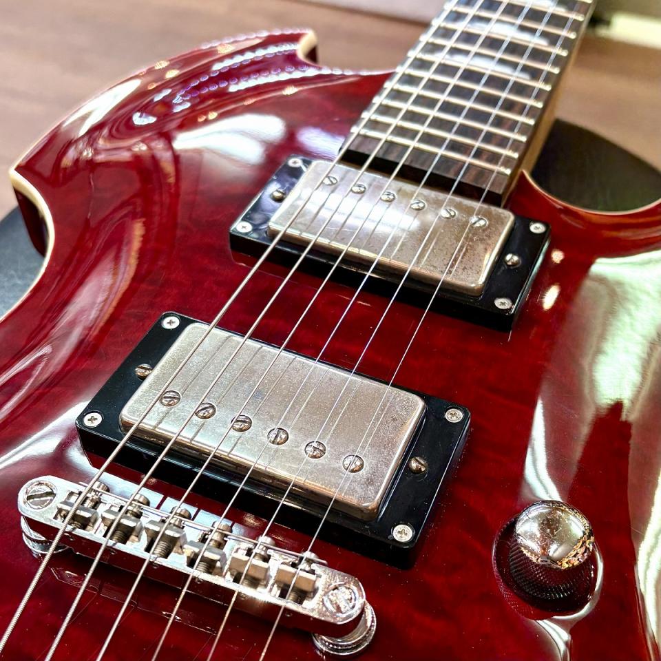 キルテッドメイプルを採用したアーチトップ形状、24ジャンボフレット、雲形インレイが組み込まれたローズウッド指板など、より実用的な仕様のモデルです!!