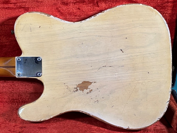 楽器は、年相応に乾いており生音でもかなりよく鳴ります。アンプを通すと、通常のテレキャスターよりも緩い雰囲気で、音抜け良く枯れた暖かみのあるサウンドです。アッシュ×メイプルのテレキャスターらしい歯切れが良さもありますが、パンチは、裏通しのもののほうがあると思います。年月を経たこの仕様の楽器ならではの程良く丸く乾いたサウンドは、他の楽器にはない心地良さがあります。