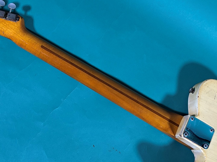ヘッドのデカールのTELECASTERの文字は一部欠損しております。ボディもネックも雰囲気良く色焼けしております。ボディの塗装は経年変化で濃淡があり、これも良い雰囲気です。塗装の状態は悪くなく、特にベタツキもありません。年相応に塗装のハゲやキズもあり長い年月を経た風格を感じさせます。