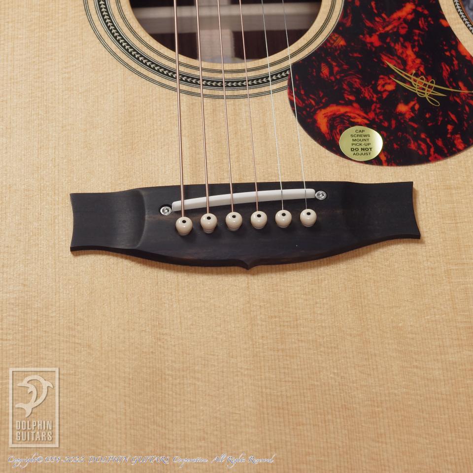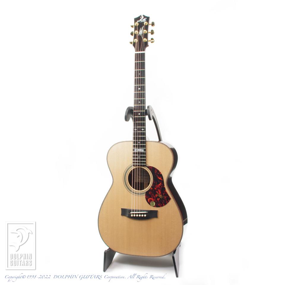 ボディ幅は000と00サイズの中間でありながら、ディープボディである為、抱え易い小柄でありながらも豊かなベース音を生み出し、極限まで高められたセットアップ、ローポジションからハイ・ポジションまで、指板に吸い付く様な弾き心地がテクニカルなプレイをサポートします。