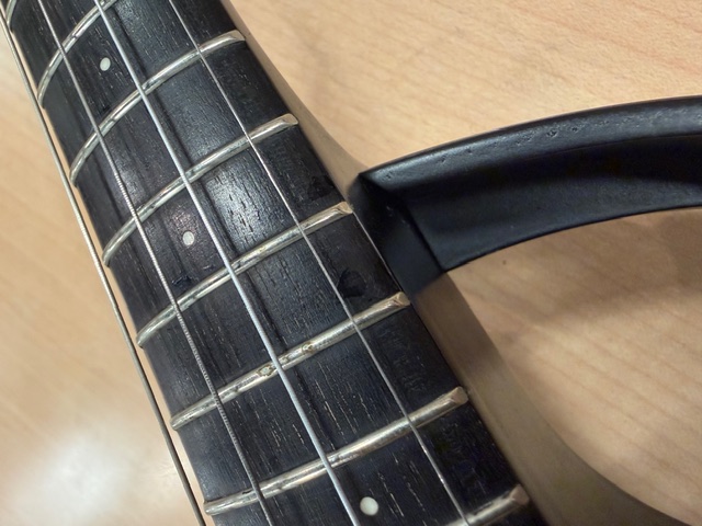 指板に補修の跡のようなものがありますが、演奏面での問題はありません。