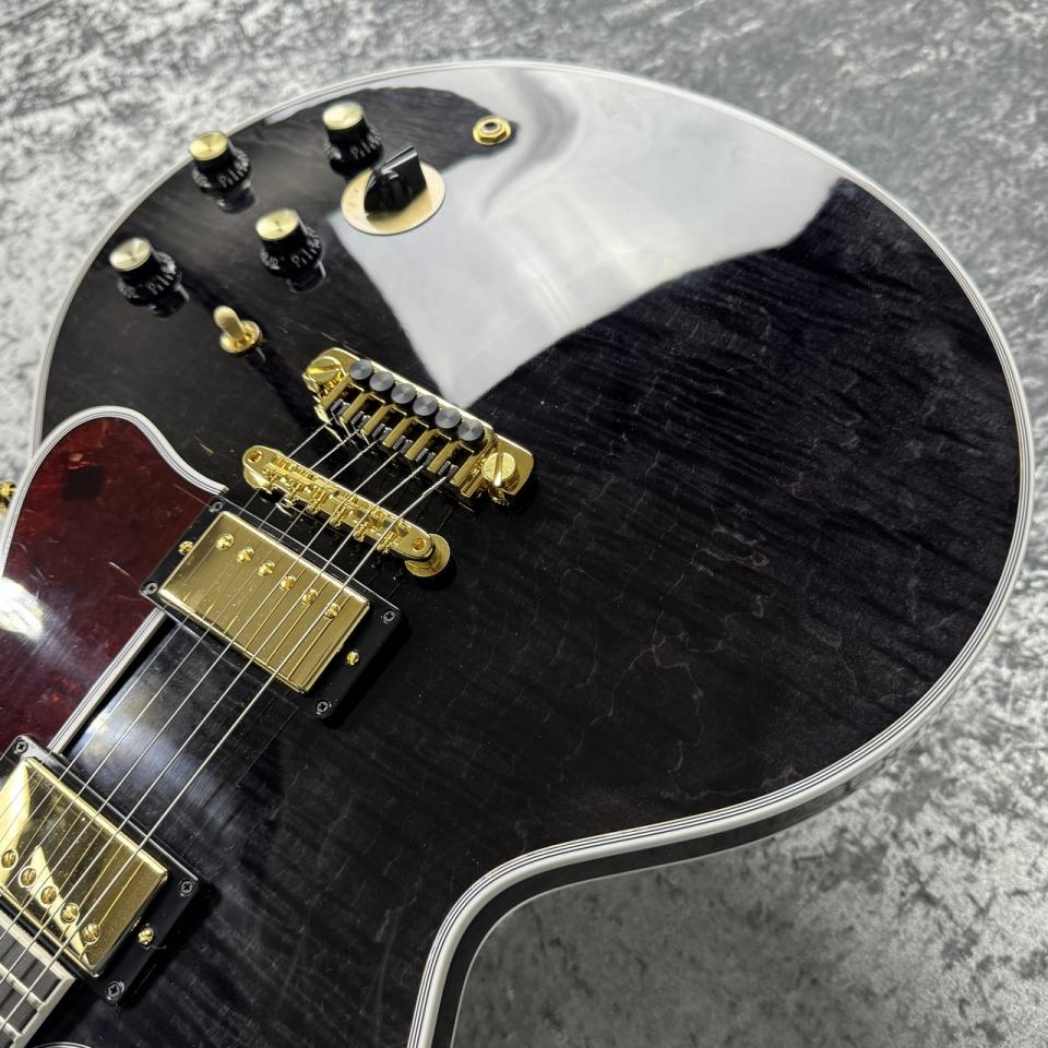 電装系は、モノラル・バリトーン・スイッチ、オーディオ・テーパーCTSポテンショメーター、ペーパーインオイル・バンブルビー・キャパシター、ギブソン・カスタムバッカー・ハムバッキング・ピックアップという組み合わせです。