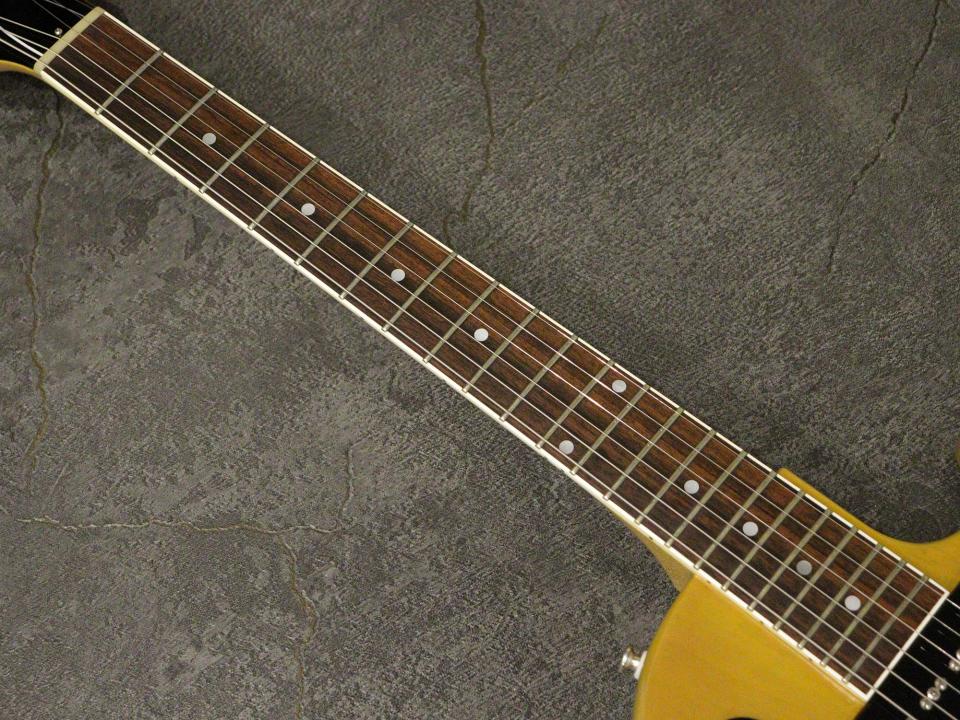 SEB構造と呼ばれるボディーを3層構造とし、中間の材の方向をブリッジに対し垂直に挟み込んだマホガニーボディ、バインディングを施したローズウッド指板、マホガニーネック。ピックアップはオリジナルP-90を2基搭載し、3wayトグルスイッチ、2Vol、2Toneの定番のコントロール、ペグが「GOTOH SD510-05MA-L3R3 Nickel」、テイルピースがアルミテイルピースに交換されており、レスポールジュニアモデルといえばの「SYW」カラーで仕上げられております。