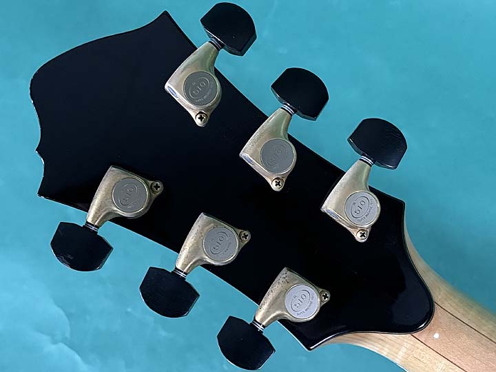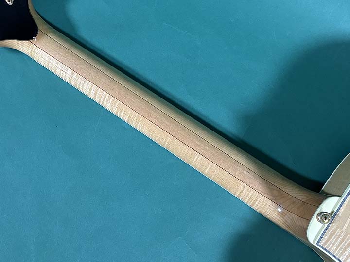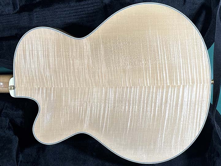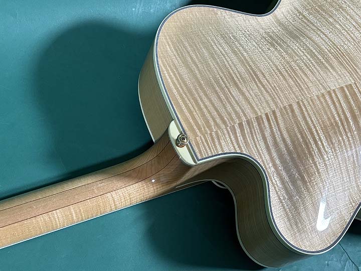 塗装は極薄のラッカー塗装となっており、エッジ部分も深く削り込まれていたりと、とても高級感と作りの良さが感じられる楽器です。