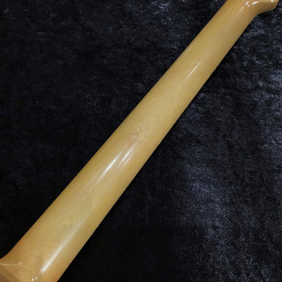 仕様に関してはアルダー2ピースボディ、1ピースハードロックメイプルネック、スラブ貼りのインディアンローズウッド指板といった伝統的なウッドマテリアルに、太過ぎず細過ぎず握り込みやすいEarly 60sライクなCシェイプ。ネックフィニッシュは経年変化で絶妙にラッカーが薄くなった塗装を再現しており、しっかりと手に馴染みながら滑りの良いグリップ感。さらにトラッドの感触を残しながらもフレキシブルな演奏を可能にする300Rとミディアムトールフレットのコンビネーション。細かいところですがクレイドットのポジションマークは理想の色味にこだわりあえてオフホワイトの素材に対してウレタン塗装を施しており、妥協のない情熱がその仕事ぶりから伺えます。