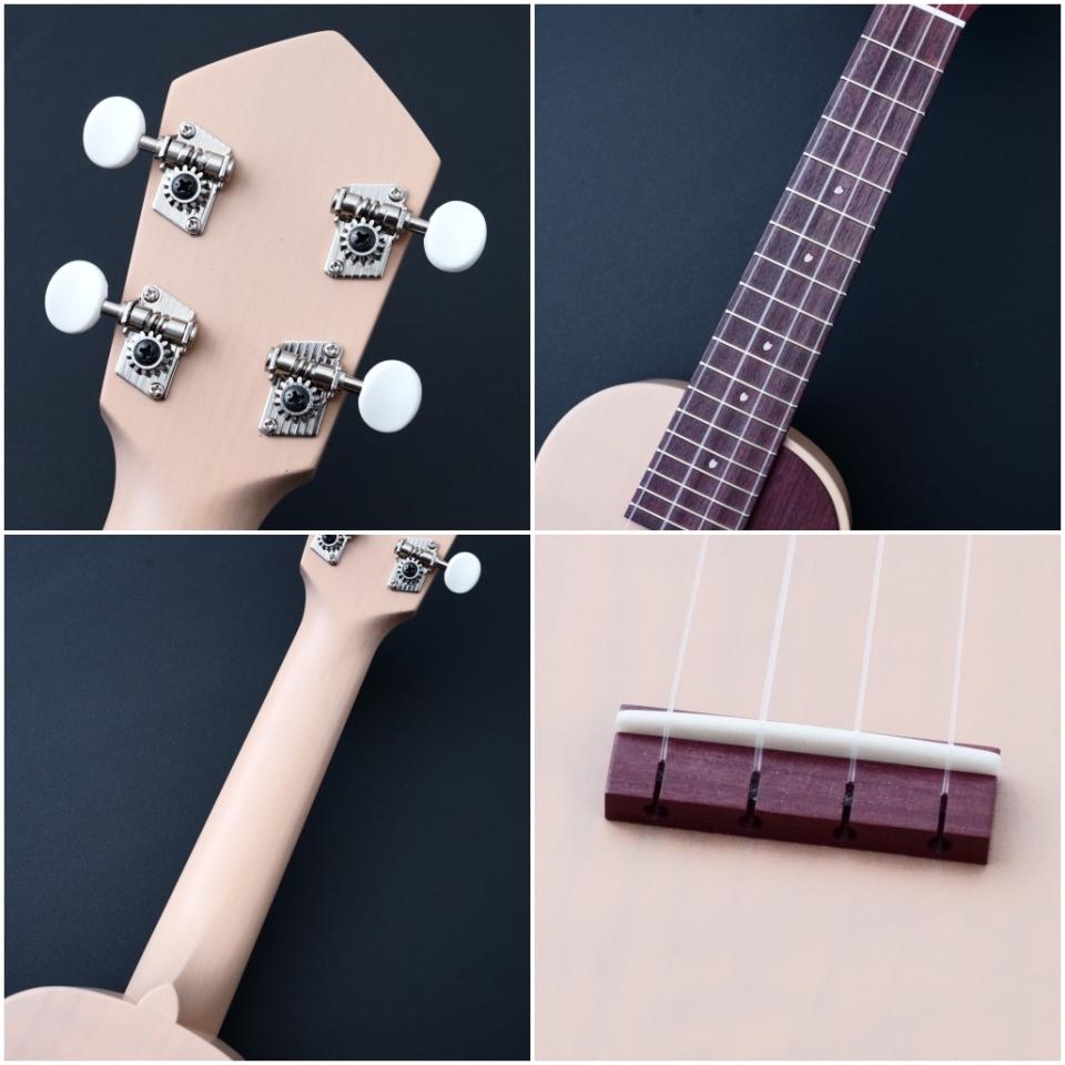 シンプルなルックスながら細部のデザインまでこだわり抜き、より幅広い方に手にとっていただけるような、手元に置いておきたくなるような愛らしさや親しみやすさを感じてもらえるウクレレです。