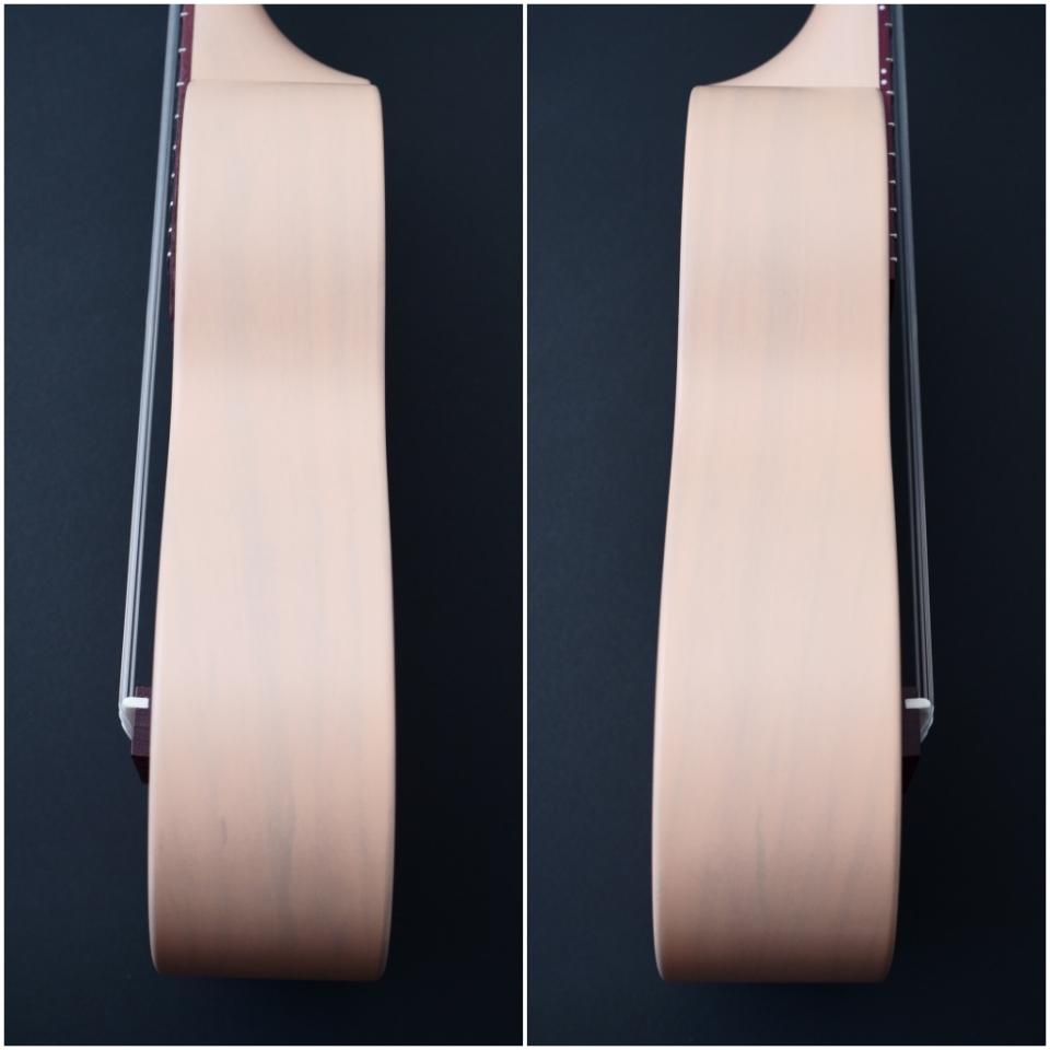 一般的にウクレレに使われることの多いマホガニー材やメイプルなどに比べ桜は比重が高く固い木材であるため、ボディだけでなく、ネックにも桜材を使ったことで、ソプラノウクレレらしい繊細さに加えて、ハリのある中域、そして桜特有の甘さが加わったサウンドが特徴的に仕上がっています。