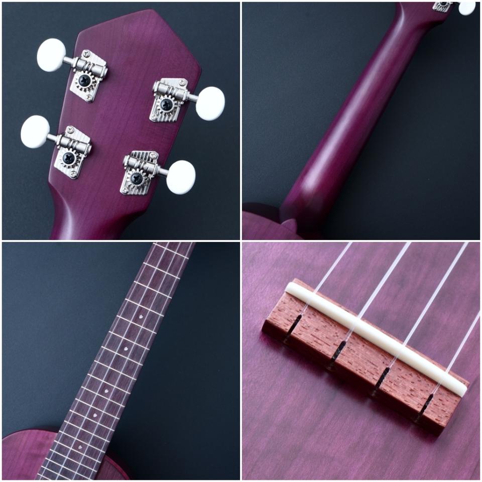 一般的にウクレレに使われることの多いマホガニー材やメイプルなどに比べ桜は比重が高く固い木材であるため、ボディだけでなく、ネックにも桜材を使ったことで、ソプラノウクレレらしい繊細さに加えて、ハリのある中域、そして桜特有の甘さが加わったサウンドが特徴的に仕上がっています。