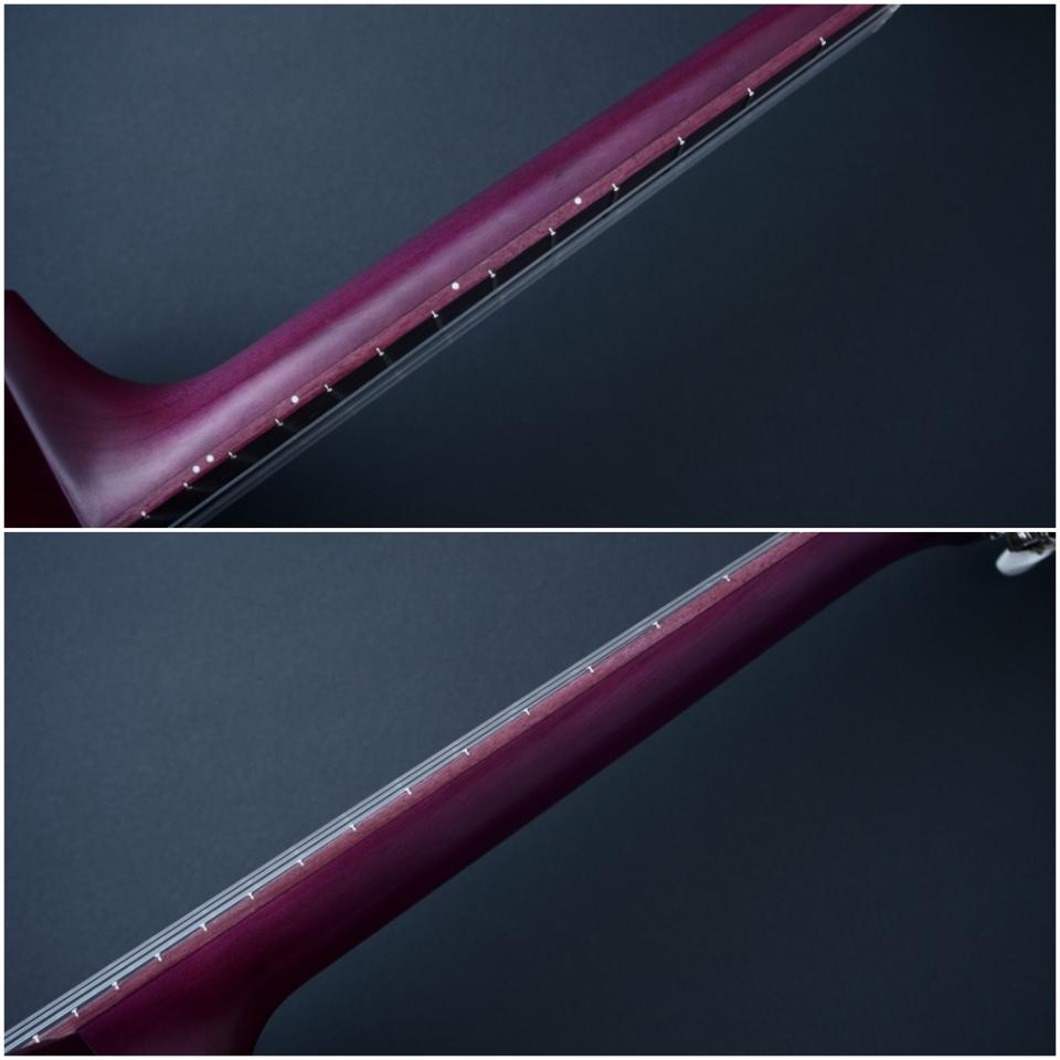 指板材パープルハートの色味に合わせた『Sakura Purple』カラーを採用しました。